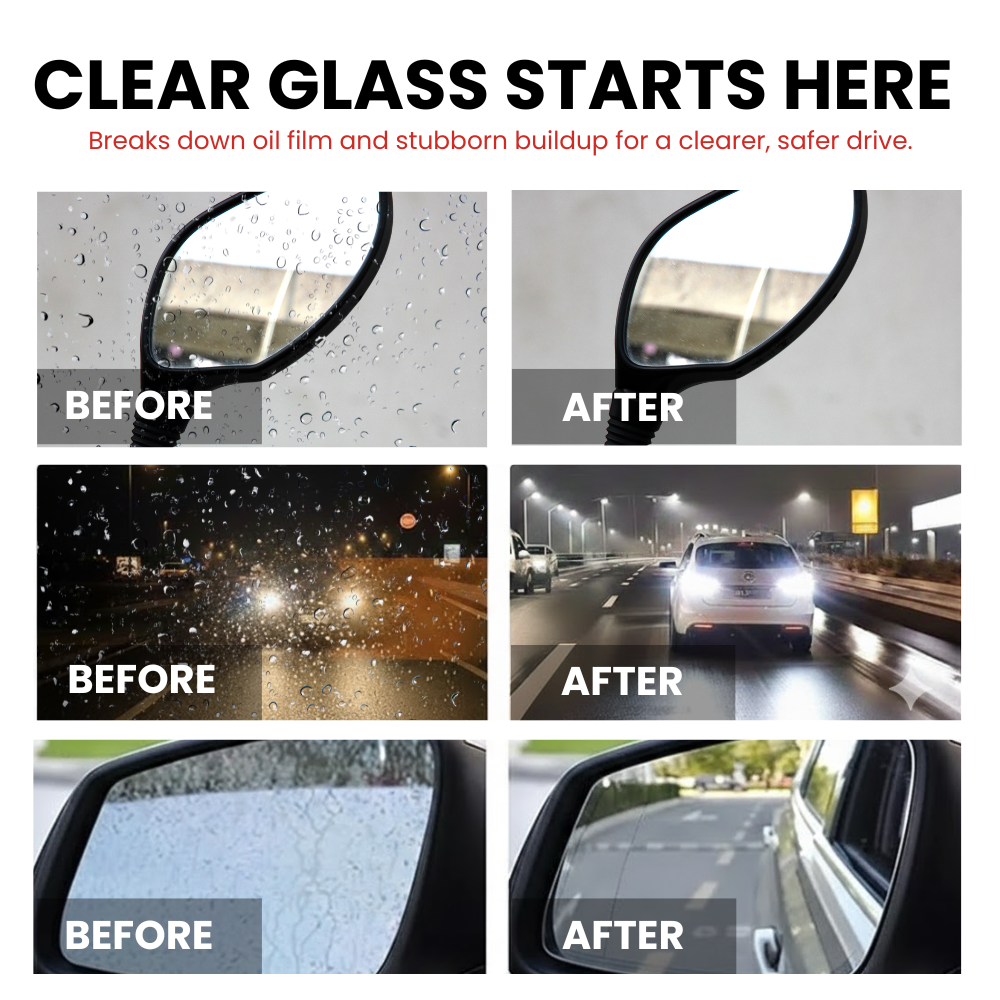 Deep-cleans glass surfaces to restore clarity instantly. Keeps your windshield and mirrors road-ready every time.